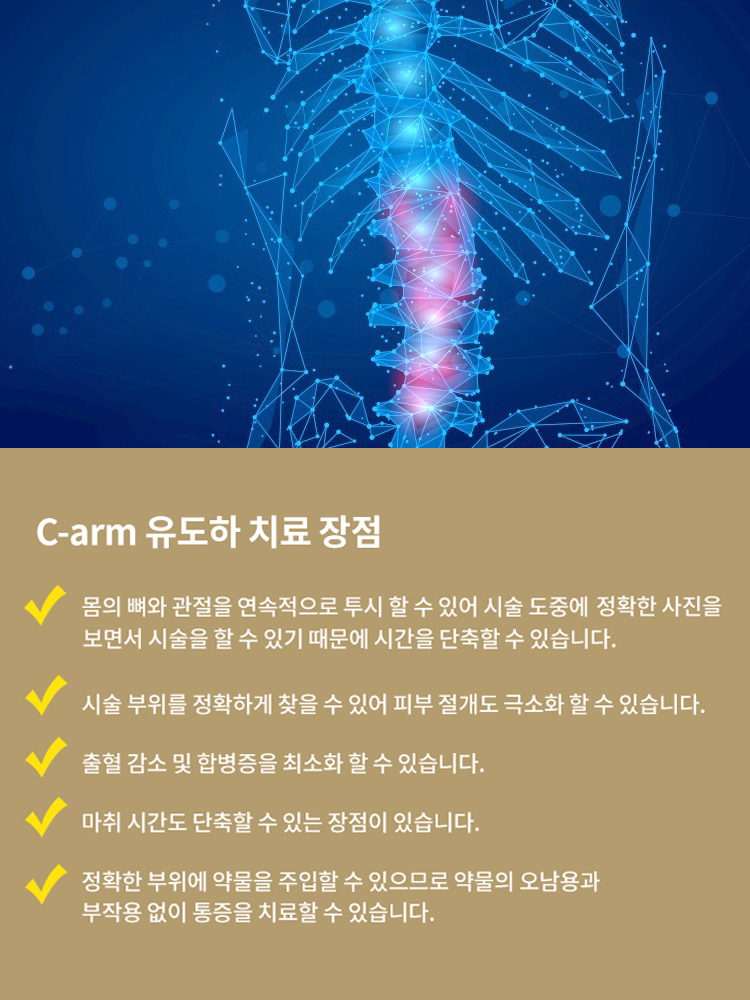 C arm 영상장치로 주사의 위치를 실시간으로 확인하면서 가장 적합한 위치를 잡고
